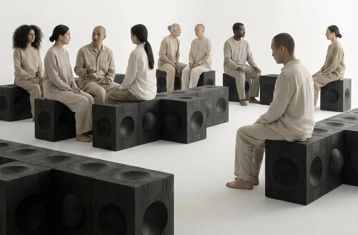 Our stools serve as a testament to the architecture of belonging, standing as monolithic individuals that carry within their very form the promise of a collective. Like the interlocking fibers of a root system, their concave and convex geometries are not mere decoration but an invitation to dock and to transform from a solitary seat into a shared foundation. In the quiet of the woods, they reveal our own truth : we are most powerful when we align our edges, turning our singular presence into a vast, connected bench where the world can finally sit together.